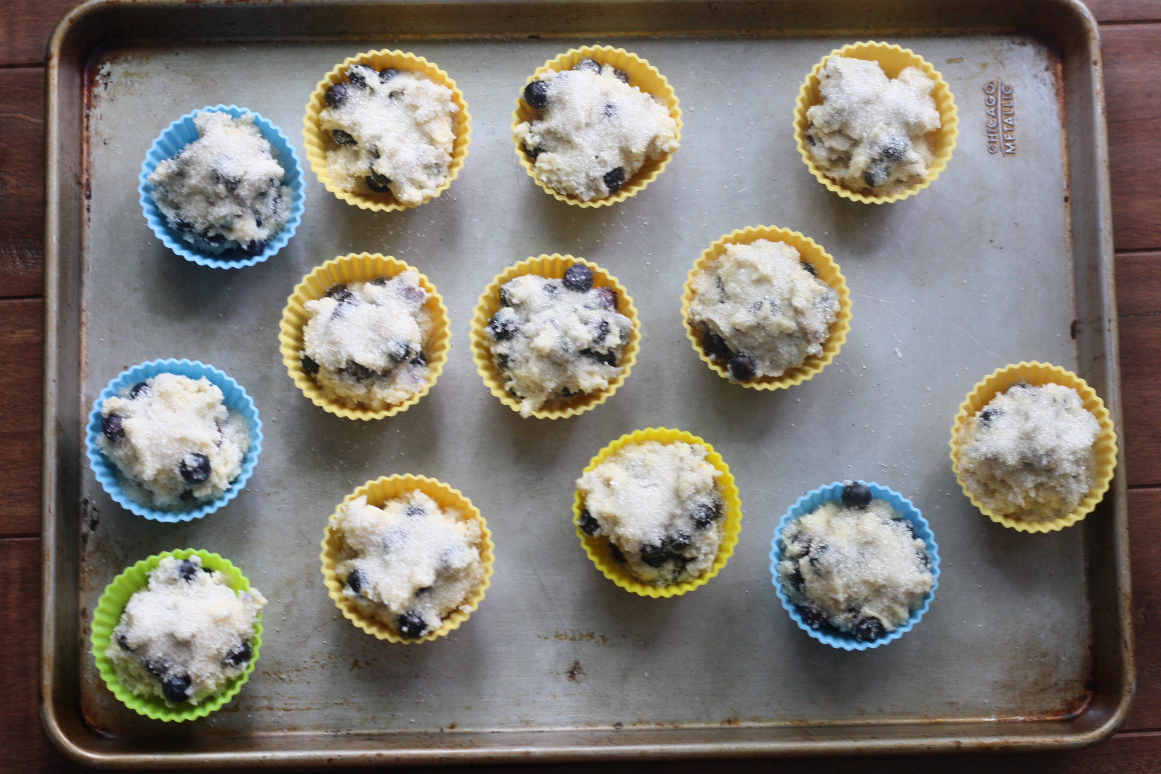 1. Heat oven to 375°F. Line a muffin tin with 10-12 paper liners or spray each cup with a nonstick spray. OR even better, use silicone baking cups. (The original recipe says it will make 9 muffins, but it made 12 muffins for me. I was generous with the blueberries...)