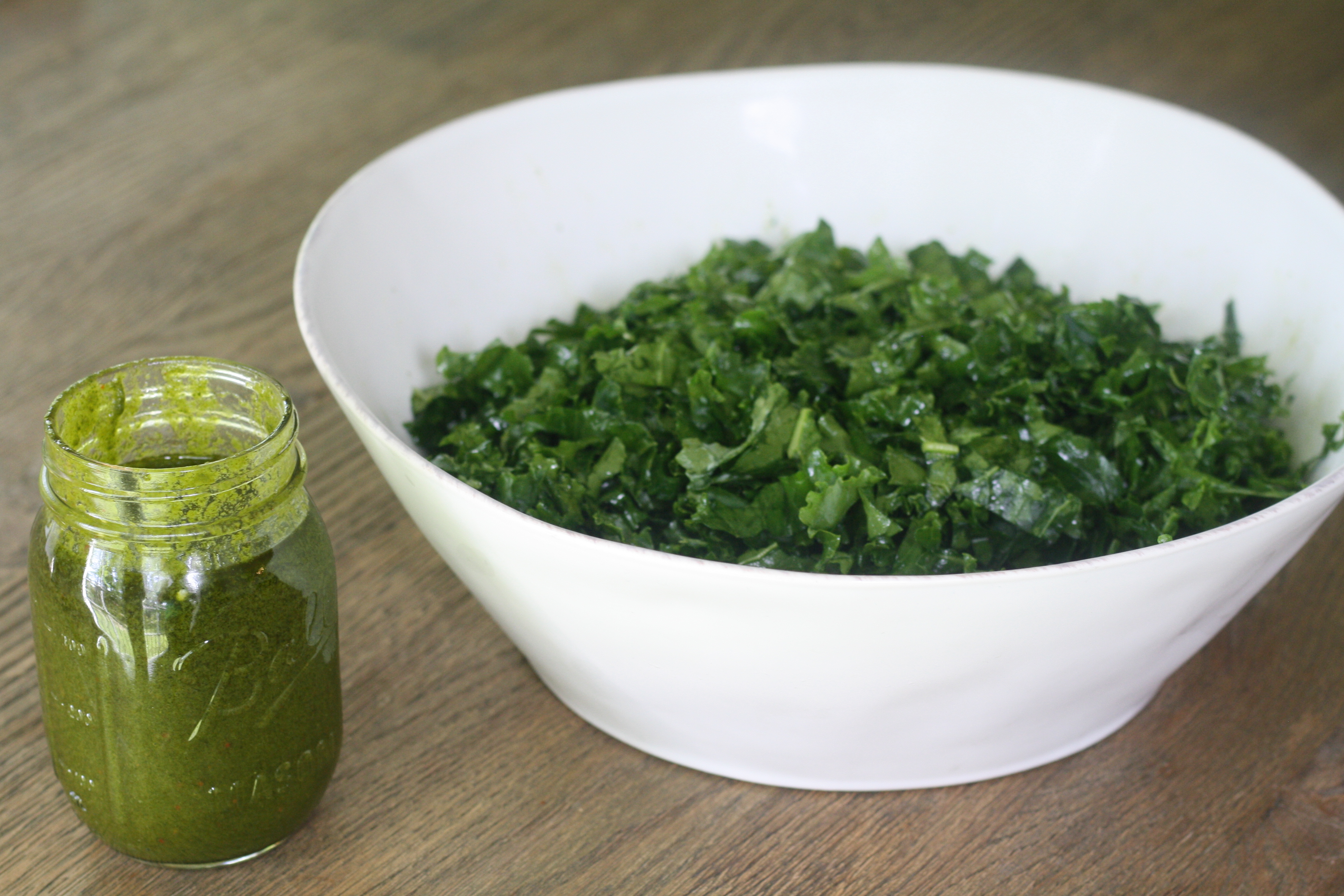 - 2 heads curly kale, thinly shredded (or 1 head kale and 1 head romaine)